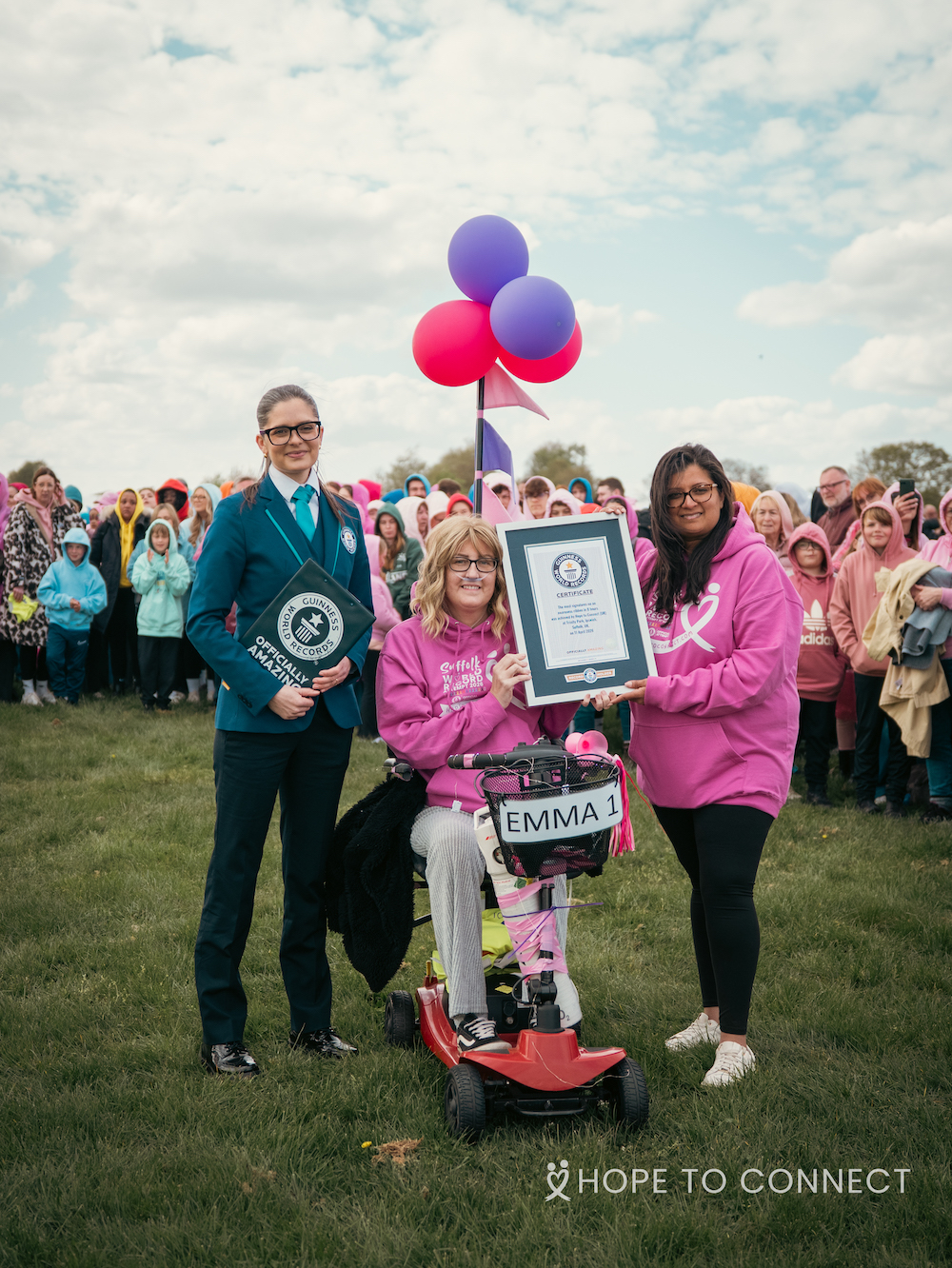 With Emma having stage 4 terminal cancer, and Mandeep having lost friends and family to it, the two joined forces to create the Hope to Connect app, an app dedicated to people who have or have had some form of cancer. And on April 11th 2026, our co-founders organised the Guinness World Records attempt in the UK, in honour, support, remembrance and celebration of all those touched by cancer!