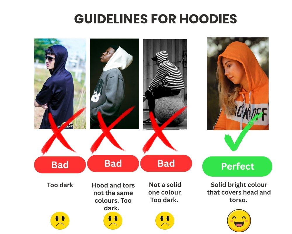 2. Prepare your hoodie, poncho, rain coat or matching cap and tshirt (please see guidelines below for acceptable hoodies and ponchos).